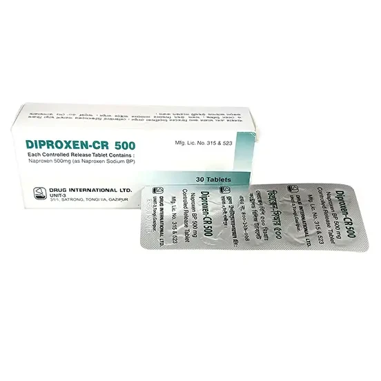 Diproxen CR Tablet (Sustained Release) Image Naproxen Sodium 500 mg Drug International Ltd. Unit Price: ৳ 10.00 (3 x 10: ৳ 300.00) Strip Price: ৳ 100.00