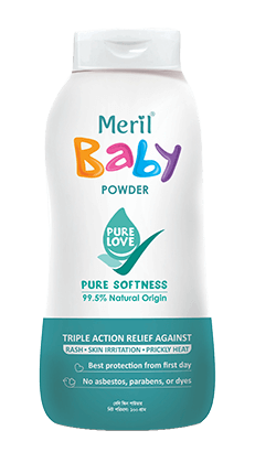 Meril Baby Powder is formulated with a triple action formula that provides comprehensive protection against rash, skin irritation, and prickly heat. Designed to keep your baby comfortable and happy, especially during the hot summer months, our baby powder is a must-have for every parent. With its gentle and effective formula, it helps to maintain the health and well-being of your little one’s delicate skin.