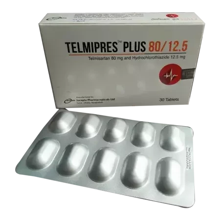 Telmipres Plus 80 mg+12.5 mg (Tablet),10 tablets per strip