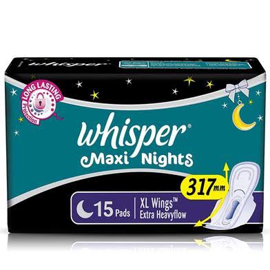 Whisper Maxi Nights Wings Heavy Flow Sanitary Pads for Women- XL 15 Napkins - WH0195